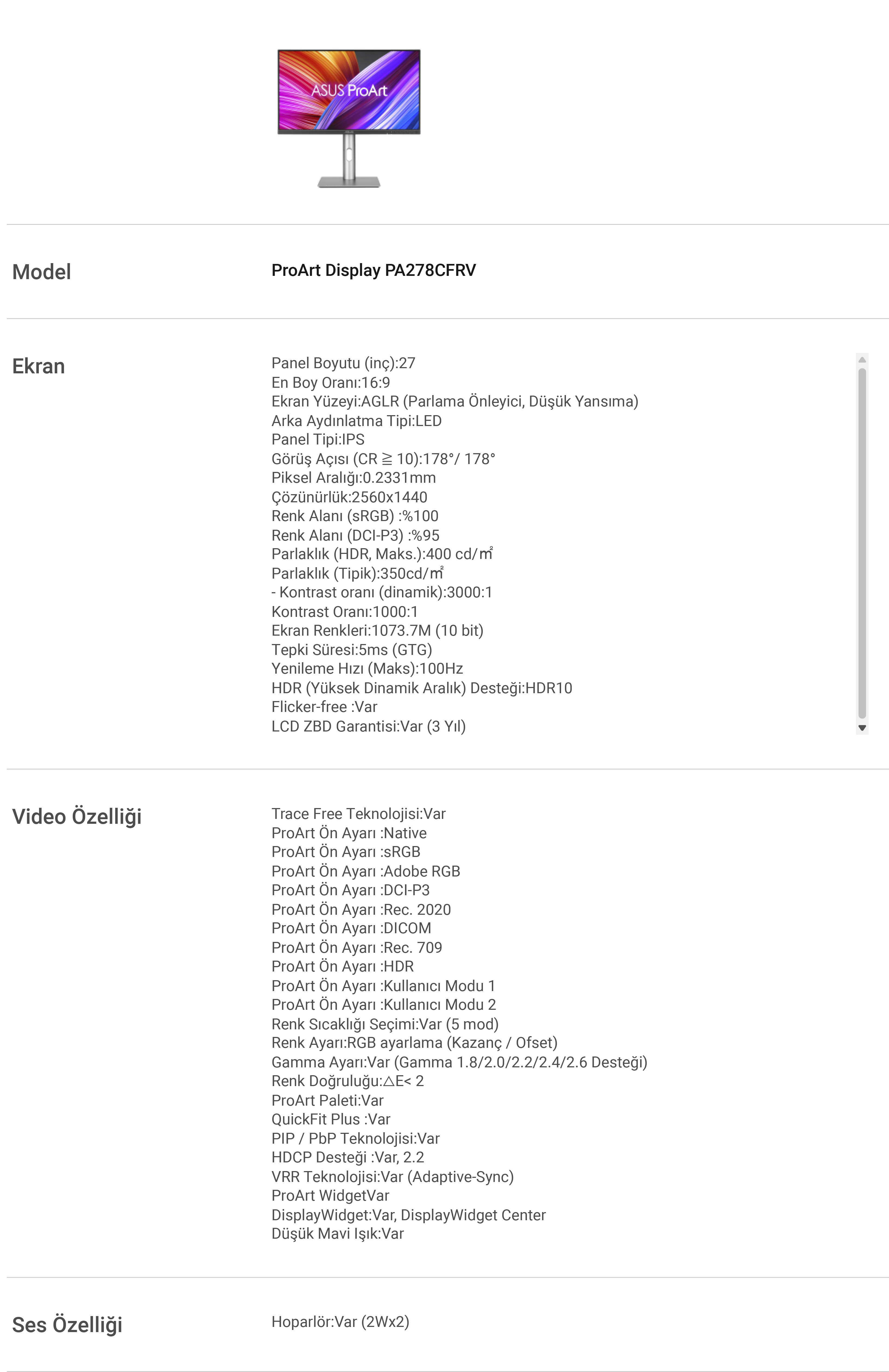 Renk Alanı (sRGB) :%100